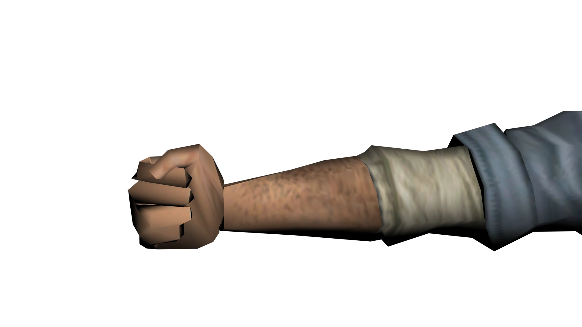 In Manhunt, the fists can be used while the Plastic Bag or Wire is selected in the inventory. When unarmed, the player can grab opponents and attack them. The fists are first used during Born Again in a fight against one of the Hoods in a basketball court in Carcer Mark.