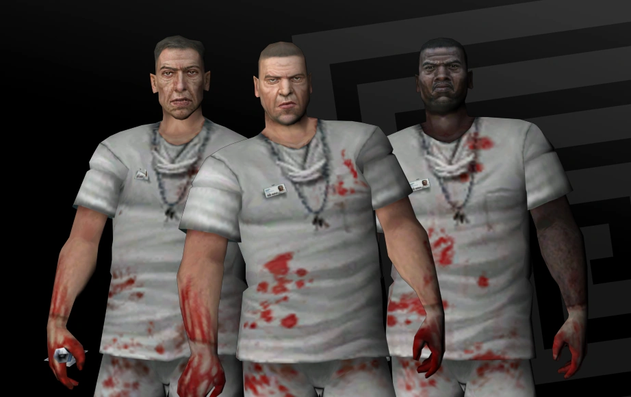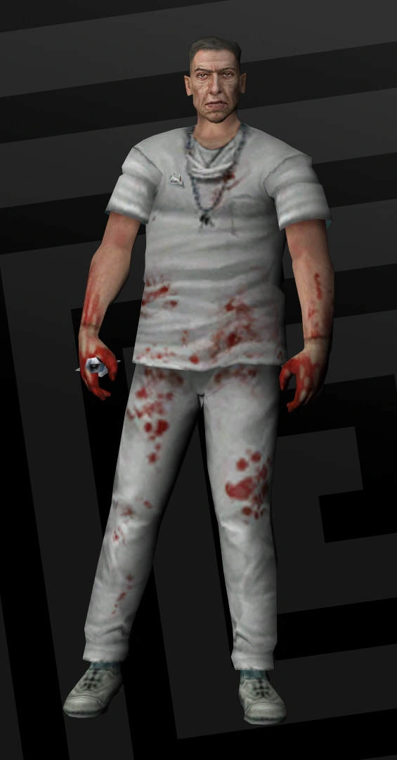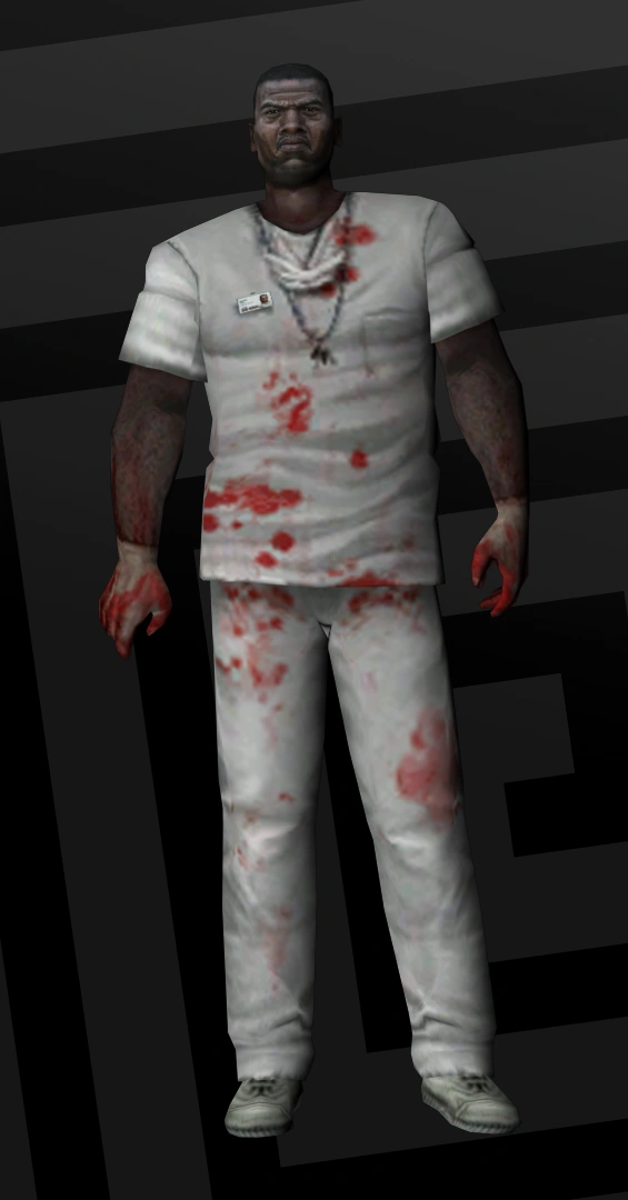 During development, the Orderlies wore light blue shirts, white pants, and white shoes. These designs can be seen in the ending cutscene of Domestic Disturbance and in Origins in the PS2 beta.