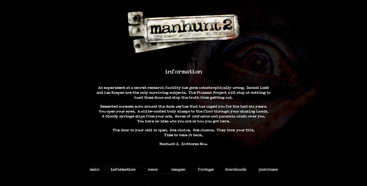 Several documents describing in detail the procedures of illegal human experiments conducted by The Project were available on the promotional website for Manhunt 2.